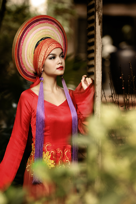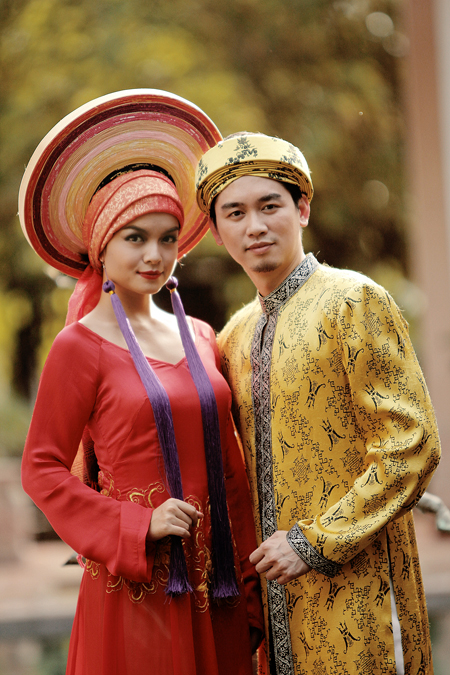 La collection est inspirée des costumes que le roi et la reine portaient au temps des palais royaux. Avec les deux couleurs rouge et or royale de lotus sur de la soie traditionnelle du Vietnam. La robe est décorée avec des motifs de lotus, représentatif des fleurs pour la vérité – l’amitié – et la beauté ( chân – thiện – mỹ ).